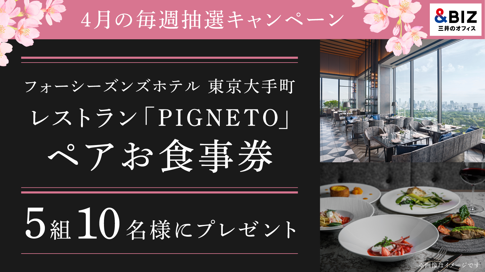 フォーシーズンズホテル東京大手町 レストラン「PIGNETO」ペアお食事券(5組10名様)