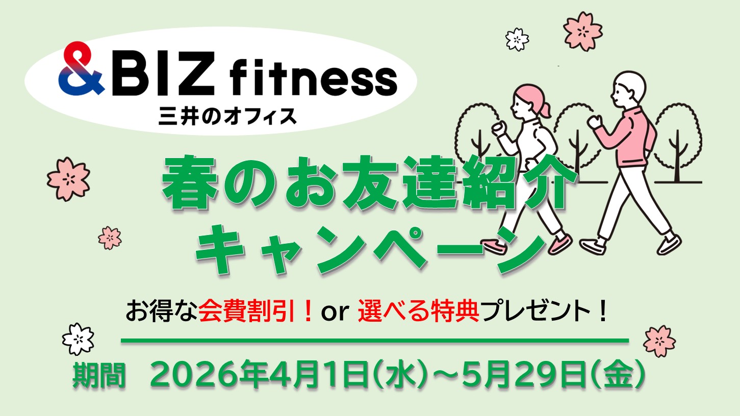 毎年大好評の春のお友達紹介キャンペーン開催いたします!新生活とともに&BIZ fitnessで運動をはじめませんか?皆様と、新しく会員になられるお友達どちらにも大変お得なキャンペーンとなりますので、この機会にぜひご利用ください!